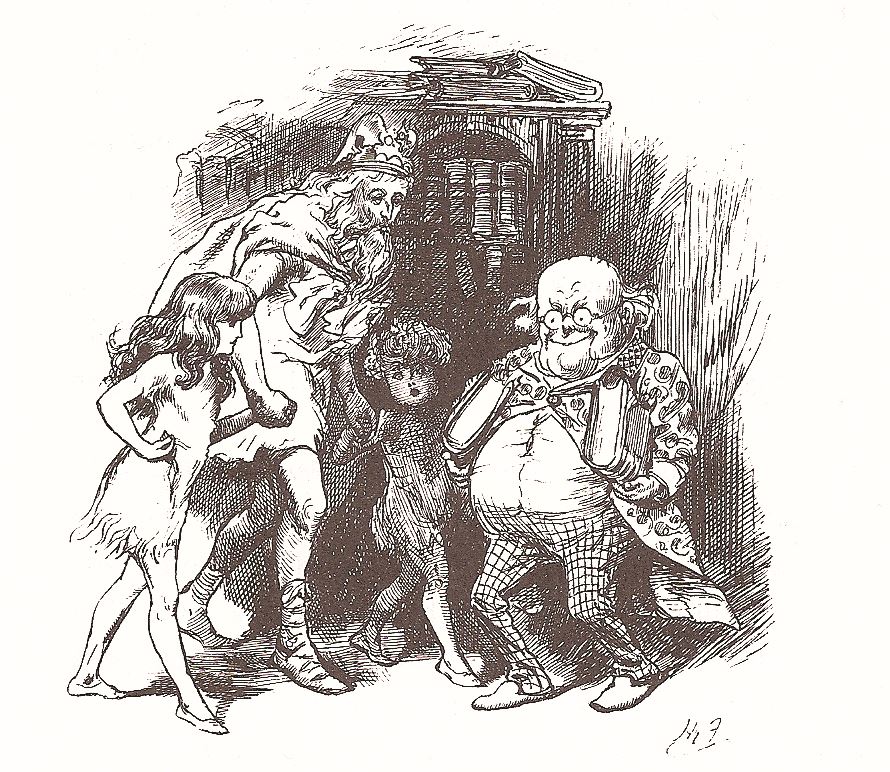 Ses olgun ve yumuşaktı, bir eliyle Sylvie’nin elinden tutarken omuzlarının üzerinde zaferle oturan Bruno olduğu hâlde odaya giren uzun boylu ve ağırbaşlı adamın yüzü, masum birini bile korkutmaya yetecek kadar asil ve zarifti; fakat Lord Şansölye’nin bir anda beti benzi atmıştı. Zar zor konuşarak “Boyutlar… Siz… Siz Yüksek Ekselansları… Ben… Ben pek anlayamadım!..” diye lafı geveledi.