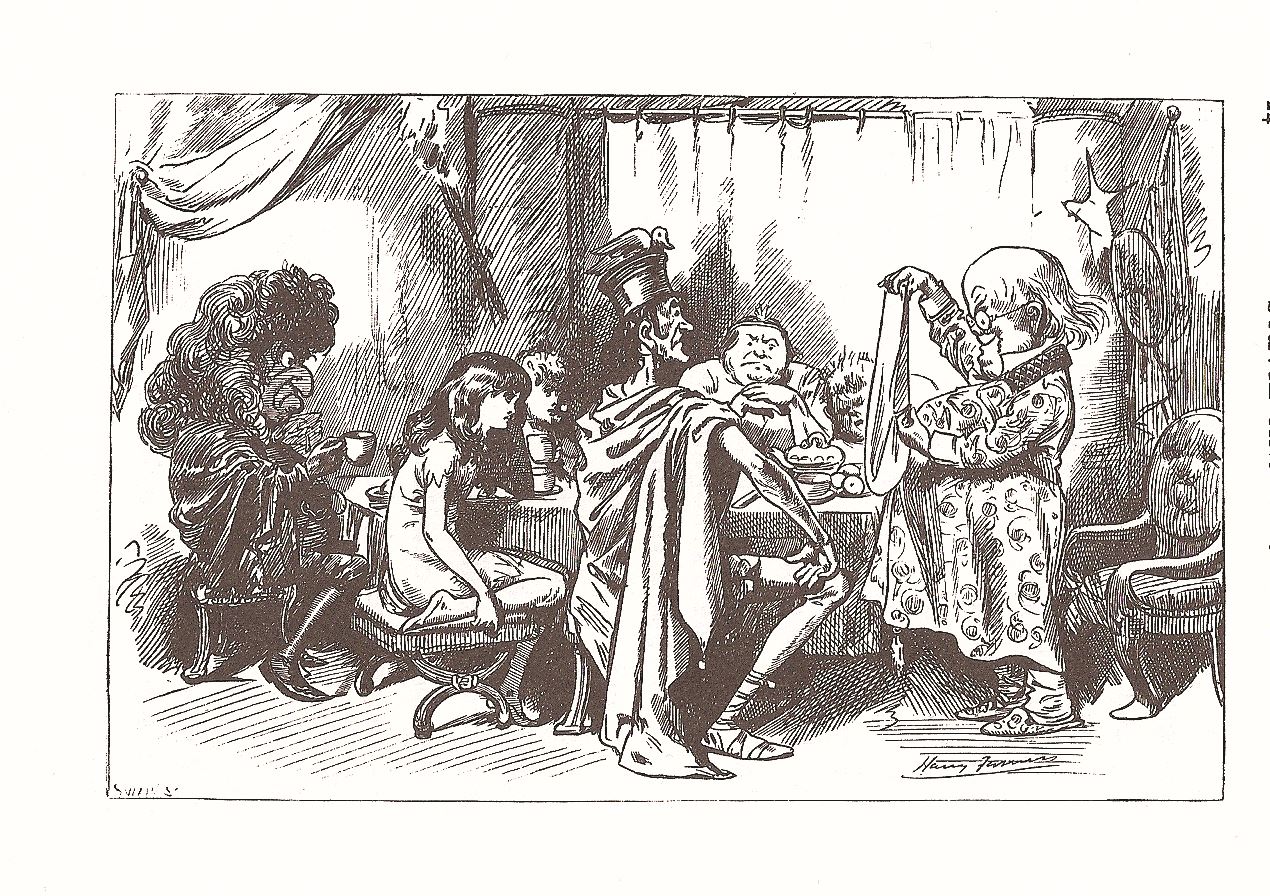 Tek seferde (eğer tıpkı benim gibi sonuca varmada yetenekliyse okuyucunun da tahmin edeceği gibi) Leydi’nin, Alt-Muhafız’ın eşi ve Uggug’un da (şişman gudubet bir oğlan, Sylvie ile aynı yaşta ve ödüllü bir domuzun yüz ifadesine sahip) oğulları olduğunu tahmin ettim. Lord Şansölye, Sylvie ve Bruno ile birlikte hepsi yedi kişilik bir grup oluşturuyorlardı.