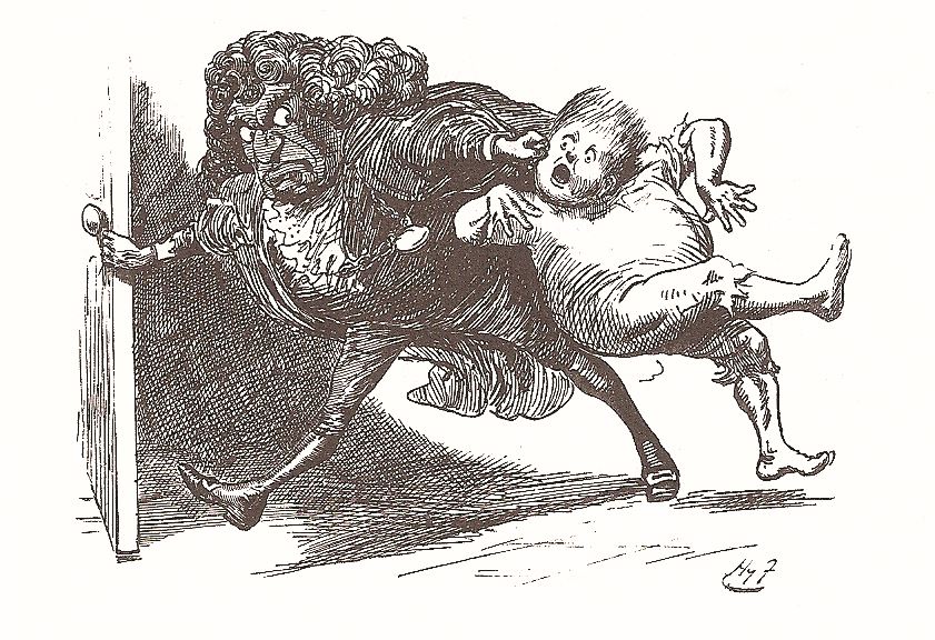 Alt-Muhafız ağlayan oğluna sinirli sinirli bakıp yüksek sesle “Çabuk, odadan dışarı çık Bayım Sirrah!” diye bağırdı. Karısı hâlâ pencereden dışarıya bakıyor ve sürekli “Domuzu göremiyorum. Nerede?” diyordu.