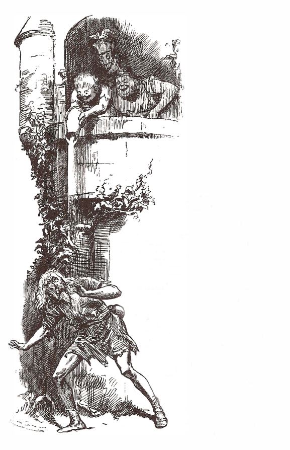 Dilenci, ıslanan yırtık cübbesini silkeleyip yukarıya doğru dik dik bakarken Alt-Muhafız “Bir sopa çekin şuna en iyisi!” diye bağırdı.