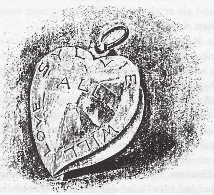 Sylvie sevinçle “Çok güzel! Bruno gel de şuna bak!” deyip Bruno nasıl parladığını görebilsin diye kalp şeklindeki madalyonu havaya kaldırdı. Altın bir zincire takılıydı; görünüşe göre masmavi değerli bir taştan yapılmıştı madalyon.