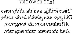‘Twas brillig, and the slithy tovesDid gyre and gimble in the wabe;All mimsy were the borogoves,And the mome raths outgrabe.