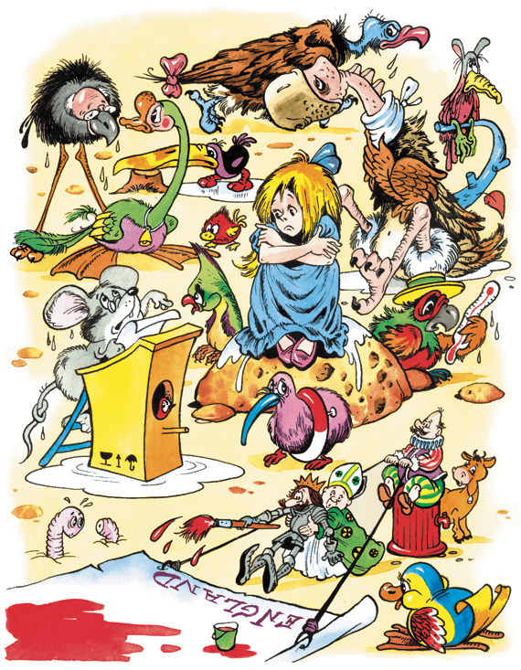 Затем все общество принялось за конфеты. При этом не обошлось без обид и недовольных возгласов. Большие птицы жаловались, что не распробовали вкуса конфет, а маленькие поперхнулись ими, и их пришлось хлопать по спине. Наконец конфеты были съедены. Все снова уселись в кружок и попросили Мышь рассказать что-нибудь еще.