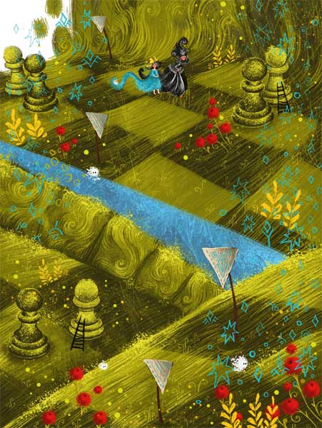 – Здесь играют в шахматы! Весь этот мир – шахматы (если только, конечно, это можно назвать миром)! Это одна большая-пребольшая партия. Ой, как интересно! И как бы мне хотелось, чтобы меня приняли в эту игру! Я даже согласна быть Пешкой, только бы меня взяли… Хотя, конечно, больше всего мне бы хотелось быть Королевой!