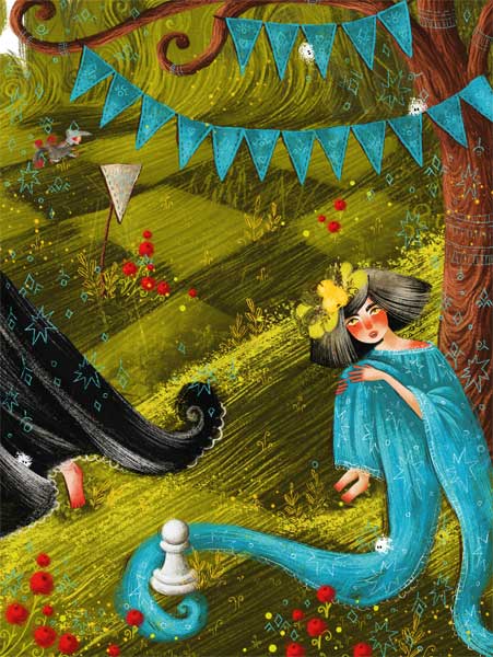 – Тебе бы следовало поблагодарить меня за любезные пояснения, – отвечала Королева с укоризной. – Что же, предположим, что ты так и сделала… Значит, так: седьмая клетка вся заросла лесом, но ты не беспокойся: один из Рыцарей на Коне проведет тебя через лес. Ну, а на восьмой линии мы встретимся как равные – ты будешь Королевой, и мы устроим по этому случаю пир!
