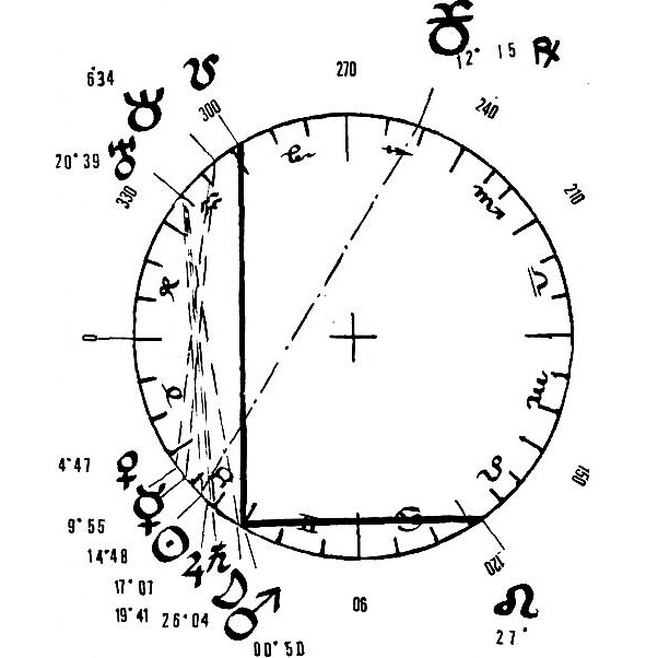 Итак, 28 апреля 1941 года мы увидим состояние планет в созвездии Тельца на 5 мая 2000 года, они очень противоречивы, так как образуют каре – квадрат Нептуна и страшного Урана, расположенного в этот день в знаке Водолея, и все мы рискуем почувствовать нечто неприятное, если не сказать больше.