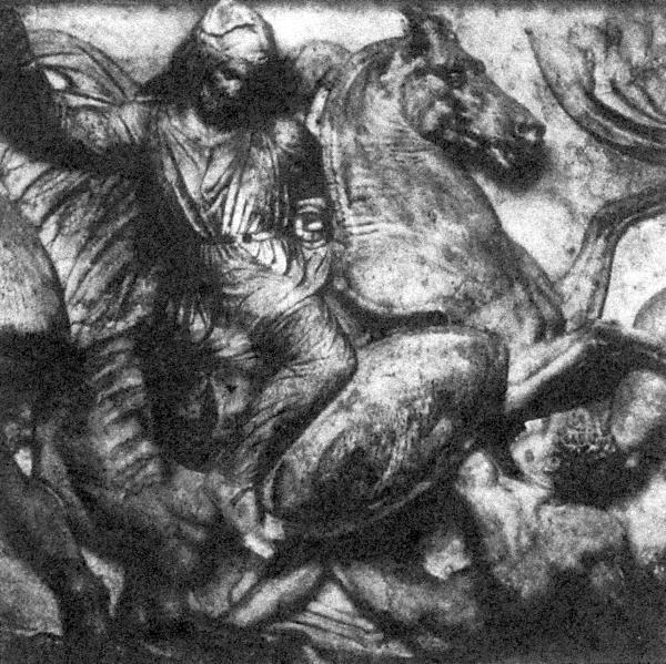 Рис. 48. Персиянин на коне. IV в. до н. э. Саркофаг Александра