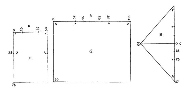 Рис. 52. Выкройка верхней одежды жрецов мидян и персов: а — рукав; б — спинка; в — капюшон