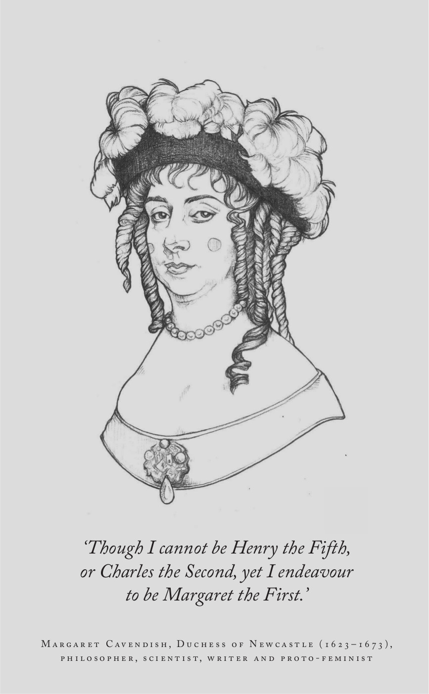 So excruciating was this experience that Margaret would later fictionalise it in her 1668 play The Presence, in which she cast herself as Lady Bashful, the novice Maid of Honour who similarly gives the impression at Princess Melancholy’s court of being ‘a clod of dull earth’. But just as Lady Bashful turns out to be more than appearances would suggest, so Margaret felt there was a goldmine of ideas beneath her own gawky exterior. No doubt she was voicing her own aspirations when her alter-ego proclaims: ‘I had rather be a meteor singly alone, than a star in a crowd.’