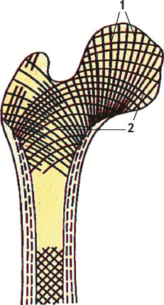 Рис. 10. Расположение костных перекладин в губчатом веществе (по линиям сжатия и растяжения):