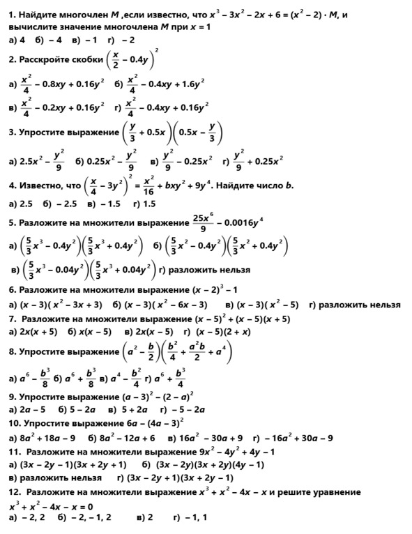 Как правило, при разложении многочлена приходится комбинировать вышеперечисленными способами, но начинать преобразования, если это возможно, с вынесения общего множителя за скобки.