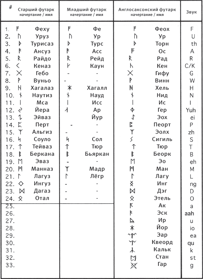 Начать можно с книг Эдреда Торссона «Футарк», «Руническое учение» и «Источник судьбы». В книге «Рунический справочник» Тони Уиллиса много информации о гаданиях и предсказаниях. Мэри Джейн Осборн и Стелла Лонглэнд в книге «Рунические игры» дают превосходный обзор англосаксонских рун. Фрейя Асвинн в книге «Листья Иггдрасиля» (позже была переиздана под названием «Руны и сила женщины. Тайны северных мистерий») рассматривает руны в контексте культурных традиций и уделяет особое внимание роли женщины. Я особенно рекомендую «Тевтонскую религию» Гундарссона – не только из-за информации, но и из-за практик медитации, которые в ней приведены.