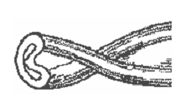 Под микроскопом в хлопковом волокне наблюдаются некоторые структурные отличия в зависимости от степени зрелости волокна. Степень скрученности и поперечный срез волокна имеют весьма разнообразную форму и зависят от зрелости волокна. От степени зрелости зависят и свойства волокна. Незрелые волокна имеют вид сплющенных ленточек с тонкими стенками и широким каналом, обладают малой прочностью, плохо окрашиваются и не пригодны для переработки. По мере созревания волокон отчетливо проявляются стенки, ограничивающие его канал. Волокно нормальной степени зрелости имеет вид штопорообразной извитой трубочки с развитыми стенками и внутренним каналом, замкнутым со стороны естественного конусообразного окончания волокна и открытого в месте прикрепления волокна к семени (рис. 2). У перезрелых волокон канал составляет его поперечник; извитость почти исчезает, они очень жесткие и ломкие [8].