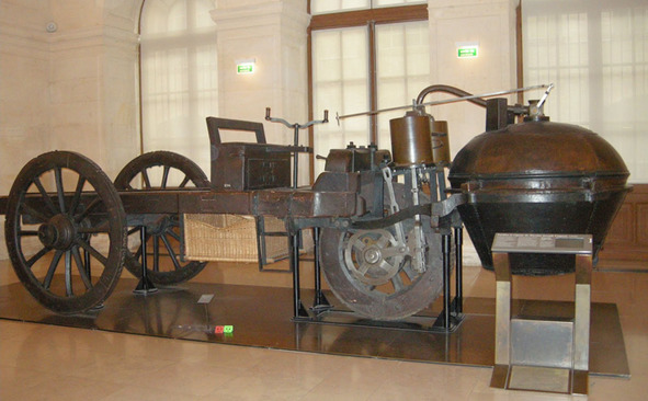 В 1764 г. русским механиком Иваном Ползуновым был изготовлен паровой двигатель непрерывного действия. Спустя 6 лет во Франции инженер Никола-Жозеф Кюньо построил паровую повозку с мощностью парового двигателя 2 л.c., которая могла ехать со скоростью 4 км/ч. В 1830 г. по Лондону ездили 26 паровых повозок, некоторые из них могли развивать скорость до 60 км/ч. Паровые автомобили начали строить во многих странах мира. Так, на Урале сконструированный Амосом Черепановым более 20 лет работал «паровой слон» для перевозки руды.