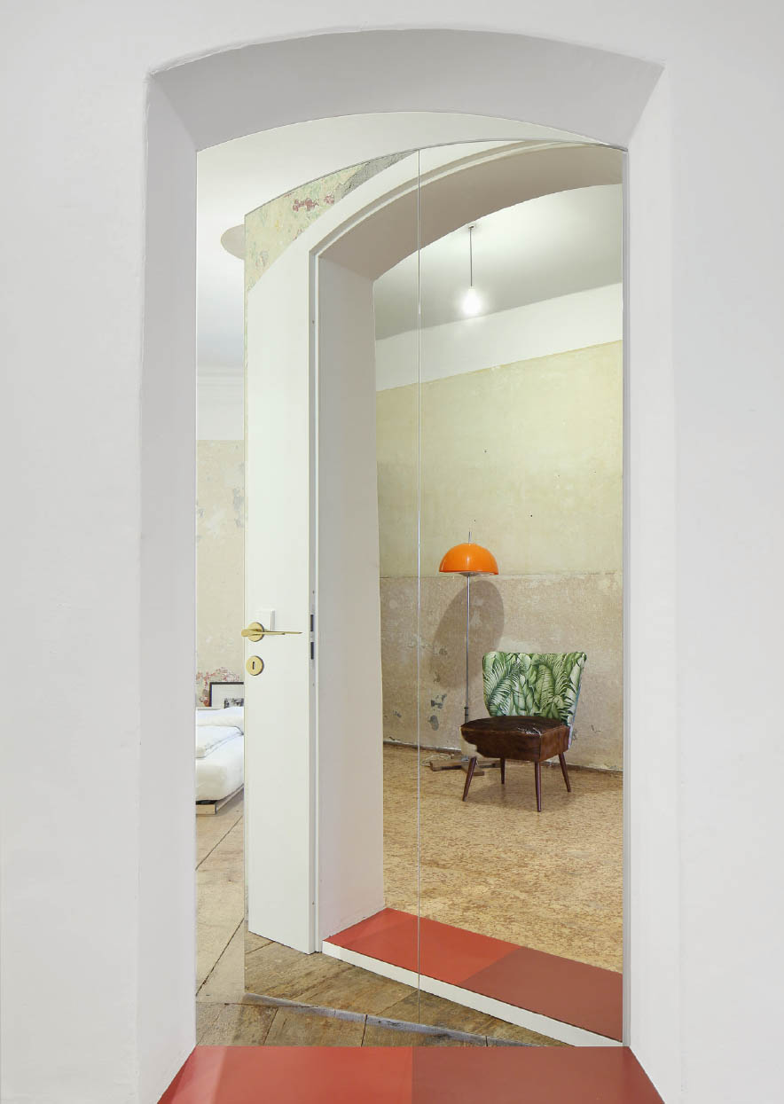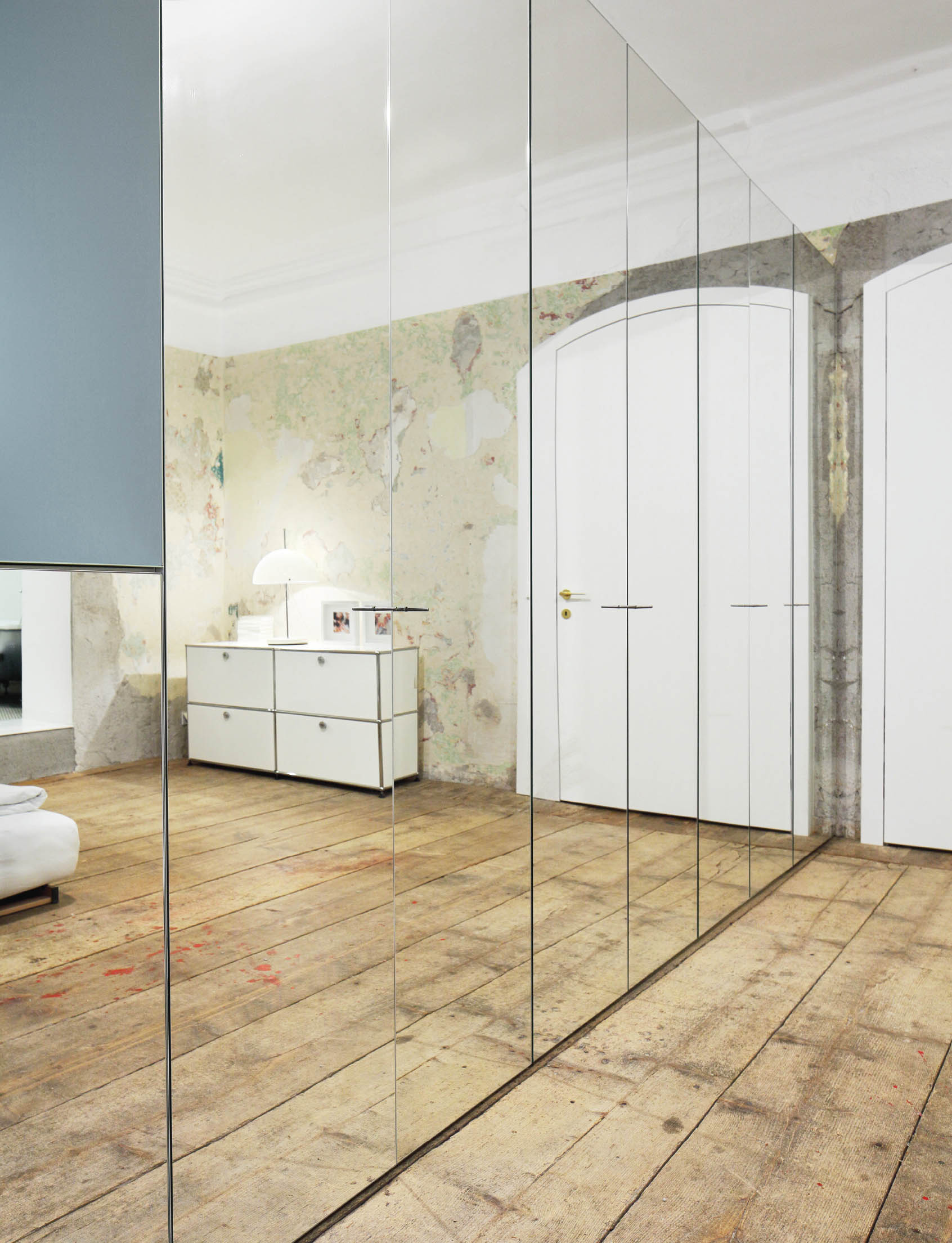 Auch als Türblatt erzeugt ein auf Maß geschnittener Spiegel kuriose Trompe-l‘Œil-Effekte.