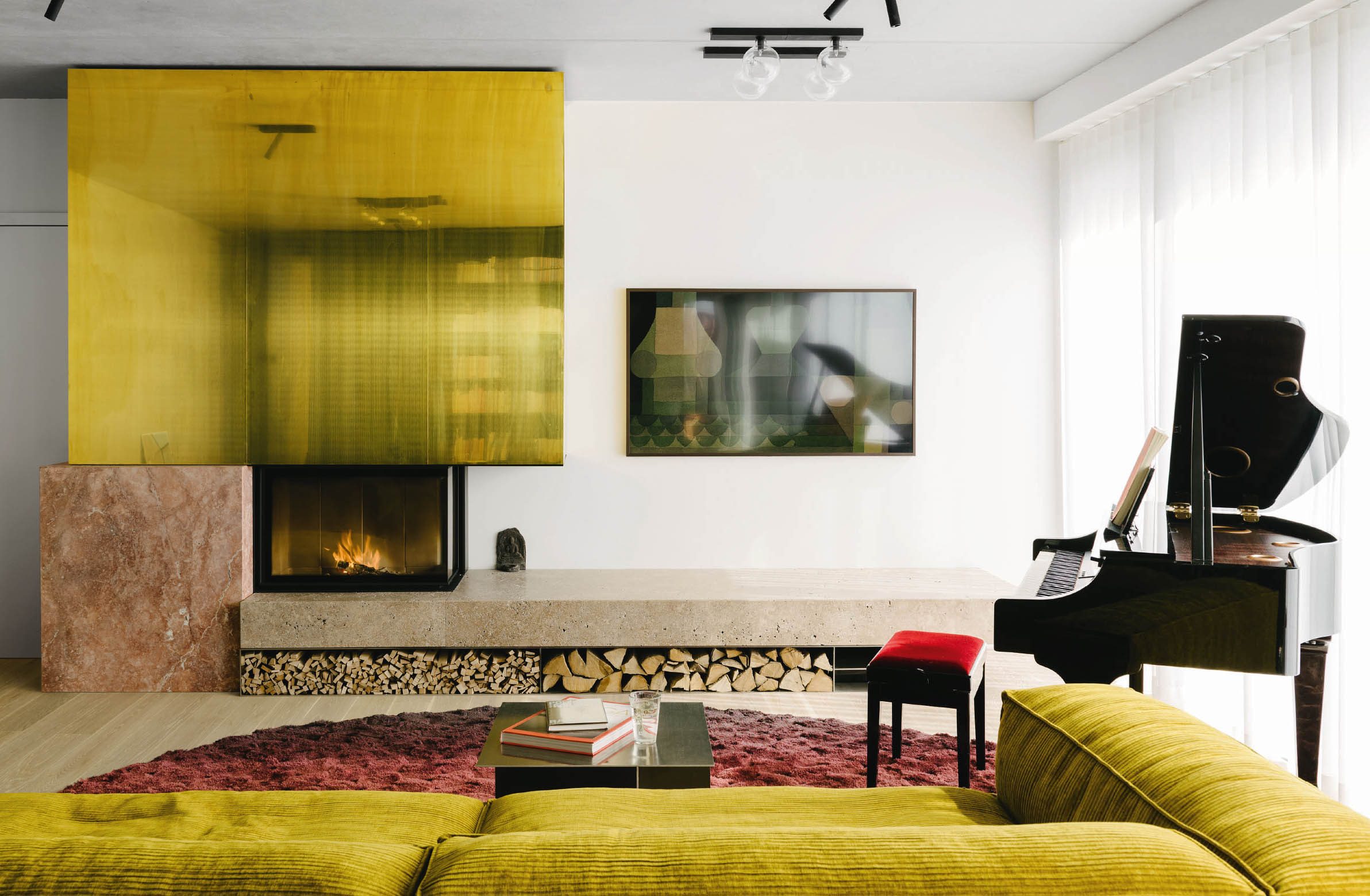 Kamin Entwurf Ester Bruzkus Architekten, Realisation Kaminfabrik Hausmann Teppich „Rocktail“ Ferreira De Sá