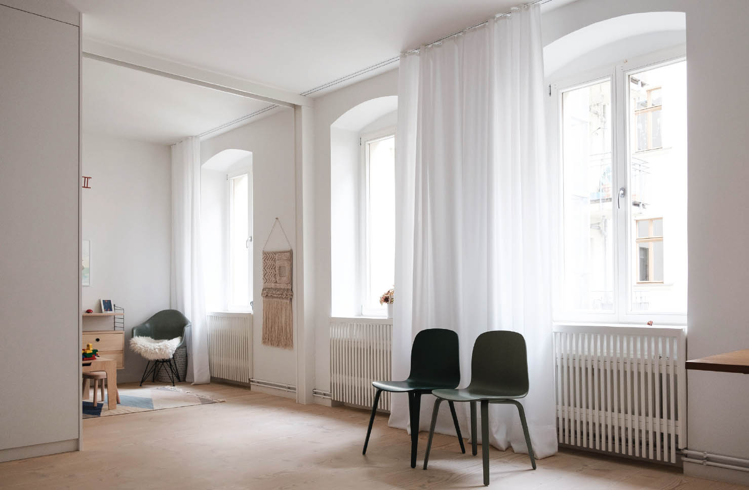 Wenn gerade nebenan nicht gearbeitet wird, expandiert das Kinderzimmer dank einheitlicher Boden- und Fenstergestaltung zu einem einzigen großen (Entfaltungsspiel-)Raum.