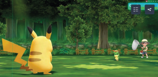 Si se mira fijo a Pikachu durante demasiado tiempo, se acabarán viendo pikachus azules flotando delante de nuestra mirada durante unos instantes. Pokemon: Let’s go Pikachu!/Let’s go Eevee! (2018). Copyright Nintendo