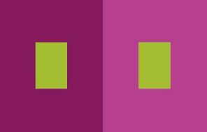 Contraste simultáneo. Se produce cuando se visualiza un color dentro de un contexto. Un mismo color, rodeado de dos diferentes, se percibirá como dos diferentes.