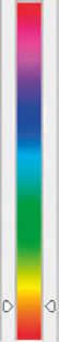 Este es el círculo cromático, representado en una barra. En los extremos se encuentra el tono rojo que corresponde al ángulo 0° (abajo) y al 360° (arriba). El ángulo 180°, marcado en el centro, corresponde al cian.
