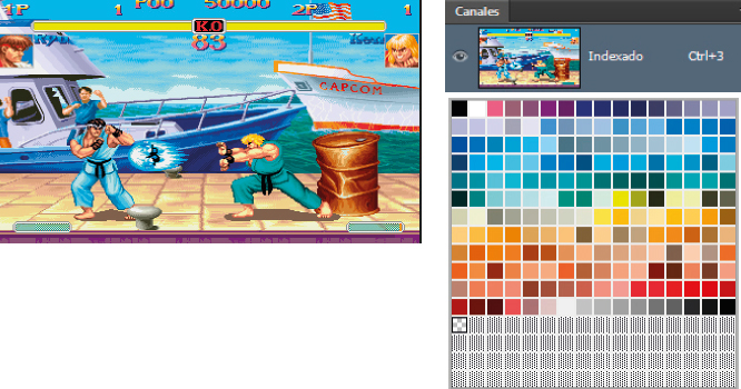 Street Fighter II (1991). Canal indexado (izquierda), imagen de la paleta de color (derecha). Copyright Capcom
