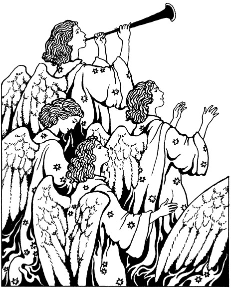 Оглянувшись, пастух увидел, что ангелы были повсюду: они сидели в пещере, спускались с горы, летали по небу; громадными толпами шли они по дороге, останавливались у входа в пещеру и смотрели на младенца.
