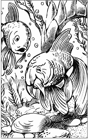 Это был совсем обычный маленький аквариум, но Волька, посмотрев на него в это беспокойное утро, всполошился недаром. Дело в том, что по сравнению со вчерашним днем в этом аквариуме произошли серьезные изменения, никак не объяснимые с точки зрения естественных наук и полные поэтому таинственного смысла: за ночь население аквариума увеличилось. Вчера было четыре рыбки, а сегодня стало пять! Появилась еще одна, новая, толстая золотая рыбка, важно шевелившая своими пышными, ярко окрашенными плавниками. Когда изумленный Волька прильнул к толстому стеклу аквариума, ему показалось, что она несколько раз хитро подмигнула ему.