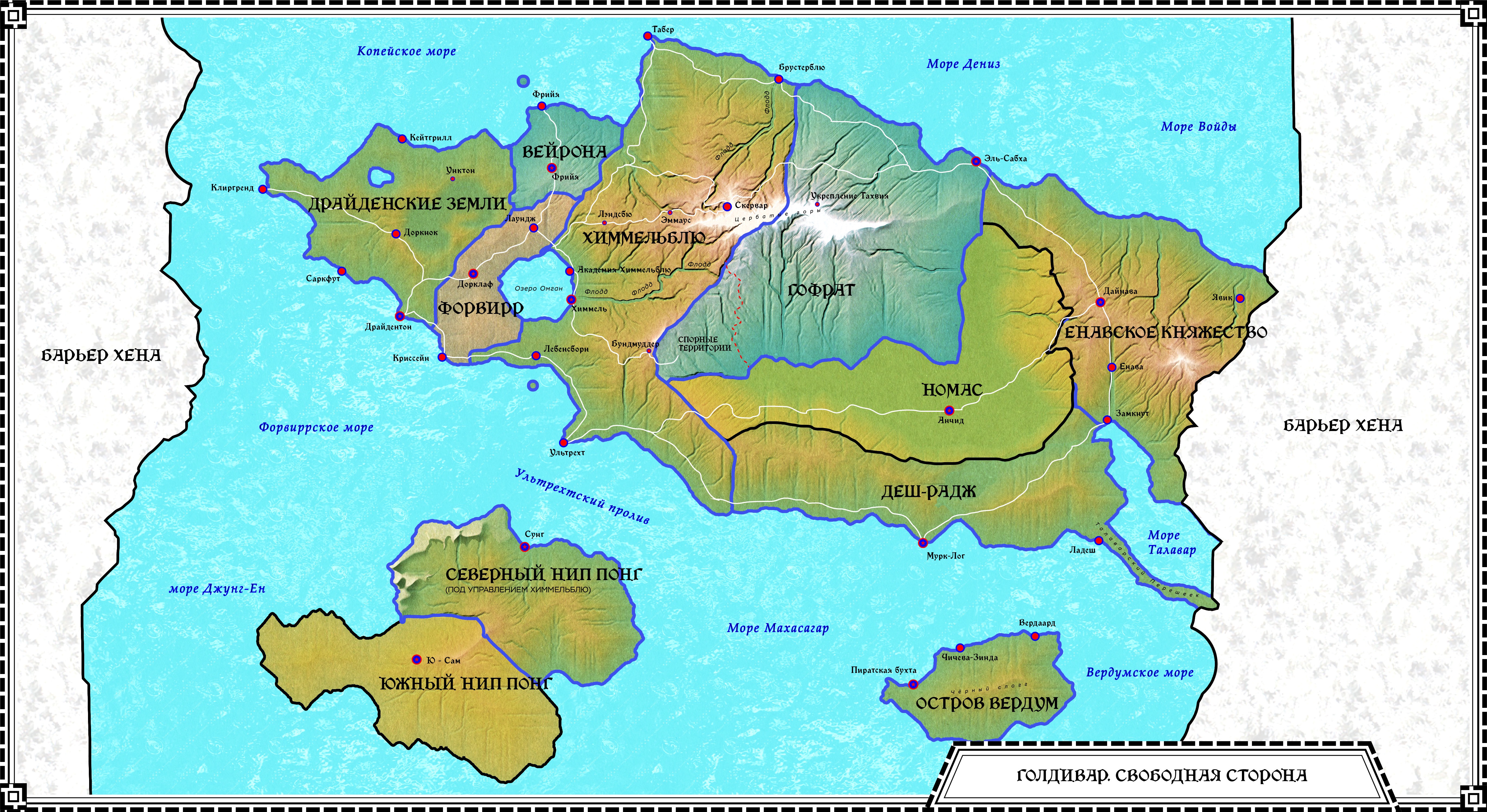 При нашем приближении карту поспешно собрали. По характерным пятнам земель, скрытыми за Барьером Хена, я поняла, что это карта Голдивара. Точнее Свободной Стороны нашей планеты.