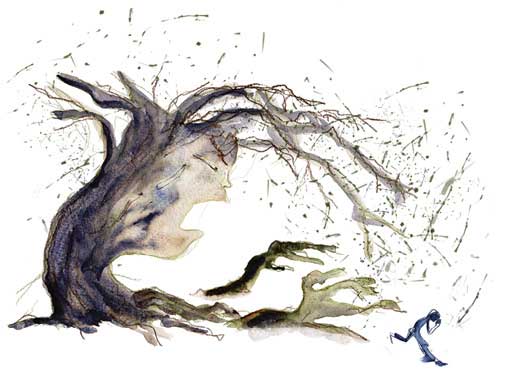 – Чем-чем? – Он опасливо дотронулся до щеки. На лице у него была деревянная маска! Нгаи глянул на свои руки и увидел сухие ветки. Пронзительно крича, несчастный бросился в еловые лапы, но ноги уже не повиновались ему.