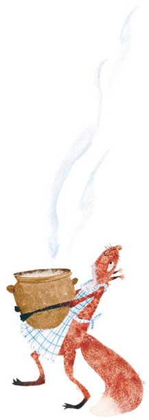 – Одну минуточку, дорогие! Вы, как обычно, очень пунктуальны, но гости ещё не в полном сборе! – Из кухни выскочила белка Марьятта, в лапах у которой дымился глиняный горшок размером с неё саму. – А ты, Раф, не волнуйся, голодным никто не останется. Сегодня у нас вместо блинов традиционная рисовая каша с киселём. Ведь послезавтра Рождество… хотя мои подснежники не вполне с этим согласны.