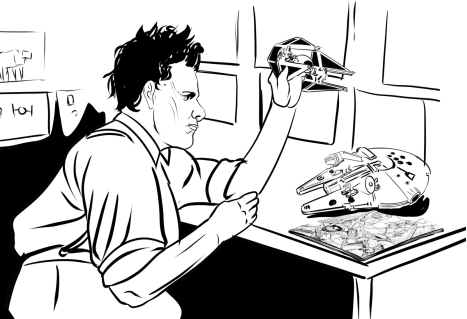 И кинокамера, укрепленная на специальной платформе, плавно заскользила по рельсам, проложенным вдоль макета на основе папье-маше. Имитация огромного ущелья выхватывалась из сплошной окружающей темноты мягким светом. А по нему летел космический истребитель, ловко огибая выступы.