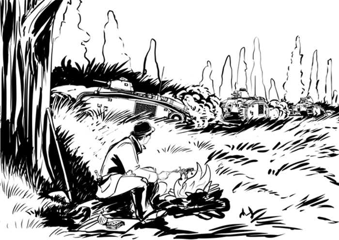 Тяжелые танки Char B1 шли организованной колонной по проселочной дороге. Сухой. И не сильно разбитой.