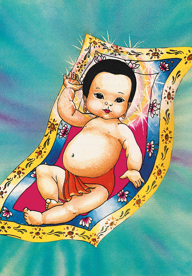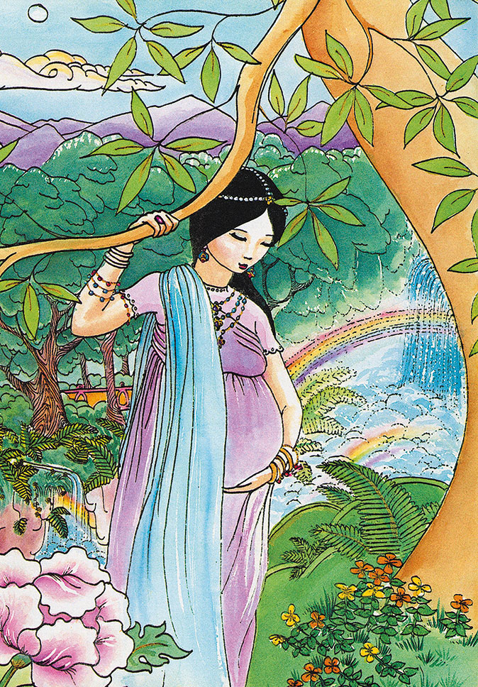 Королева Майя не знала, что радость от рождения сына с ней разделило всё королевство. Она взяла младенца на руки и вернулась во дворец. Это было в полнолуние в мае – в начале четвёртого месяца по индийскому календарю.
