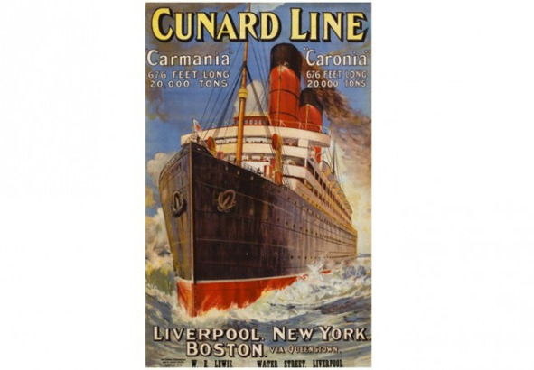 Рекламный постер лайнера «Кармания»; пассажировместимость – 2650 человек – больше чем на «Титанике»