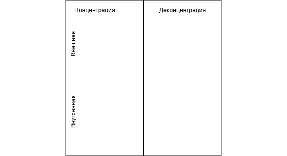 Узкое внешнее внимание («внешняя концентрация») позволяет убрать помехи и собрать всю энергию на выполнении задачи. Как показывают исследования в разных видах спорта, наилучшие результаты спортсмены показывают тогда, когда их внимание направлено наружу («внешнее внимание») и меняется от узкого к широкому, от концентрации к деконцентрации, по мере необходимости10.