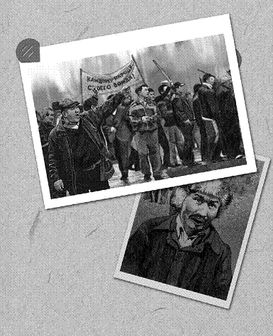 Разноцветные колонны демонстрантов организованно возвращаются из города. Но заснеженная площадь уже взята в кольцо синими и серыми шинелями. А прилегающие улицы загорожены тяжелыми грузовиками. Однако молодежь это не останавливает. Она просачивается между машинами. Стягивается ручейками к трибуне. Если милиционеры препятствуют проходу, их оттесняют, отталкивают. Там и тут вспыхивают ожесточенные стычки. Толпа угрожающе растет, набухает, расползается чернильным пятном, занимая все свободное место.