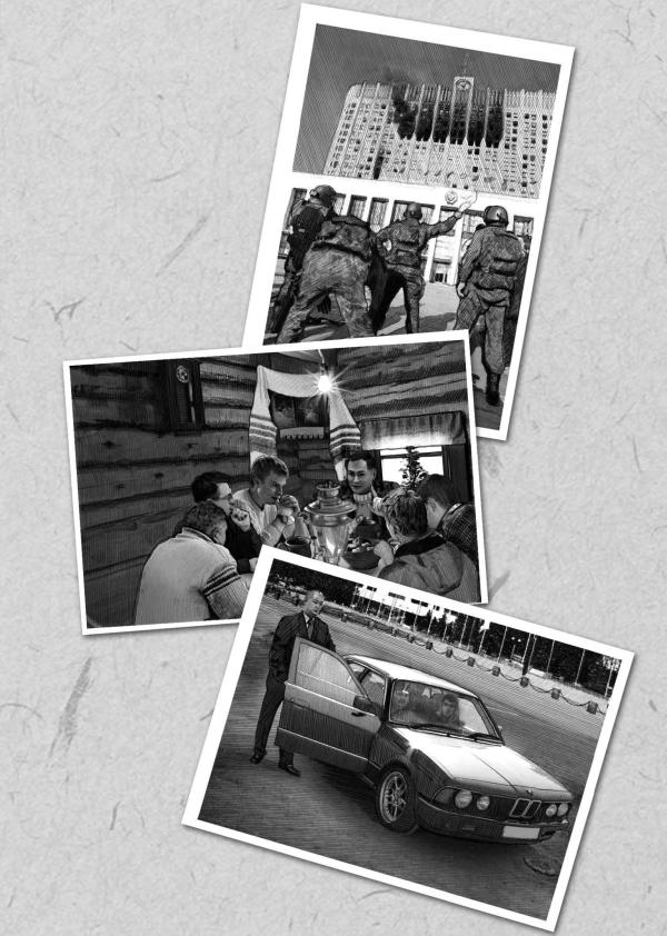 – Боязно, однако! – шепчет про себя Анатолий. – Как бы не вляпаться. – И добавляет уже погромче: – Кто тут прав? Кто виноват? На одной стороне – Ельцин и его люди, министр обороны, начальник ФСО. Вся исполнительная власть. На другой – опять же вице-президент, спикер парламента, всенародно избранные депутаты. Пойди тут разберись.