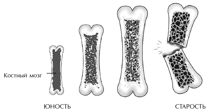 Организм человека – идеальная саморегулирующая система. Для поддержания кислотно-щелочного равновесия он извлекает из костей кальций и магний – своеобразные щелочные «буфера», которые нейтрализуют кислоты. При большом количестве кислоты кости сначала теряют магний, затем кальций. В результате мышцы очень быстро теряют тонус (боли и слабость в мышцах человек может ощущать уже в молодости), развиваются остеопороз (снижение плотности костей) и болезни суставов. Чрезмерное употребление сахара ведет к усиленной потере и выбросу магния с мочой.