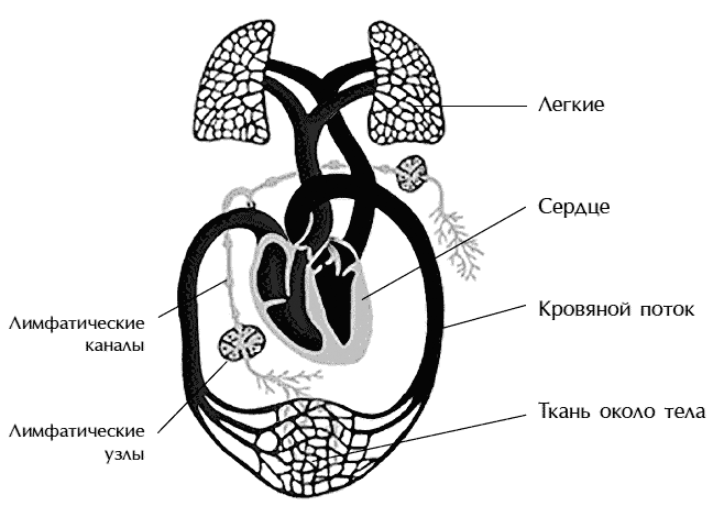 Представьте кровеносный сосуд, по которому идут эритроциты и лейкоциты, а рядом с ними расположены клетки, которые получают из сосудов питание. Из каждой ткани отходят лимфатические сосуды. Они начинаются прямо в ткани и фильтруют через себя огромные потоки лишней жидкости. Некоторый объем жидкости вместе растворенными в ней витаминами и веществами всасывается организмом, но основной объем жидкости, промывая эти ткани, уходит в лимфу. В них живут бактерии, грибки и паразиты. Сюда же постоянно все вымывается водой из сосудов, и это уходит в лимфу.
