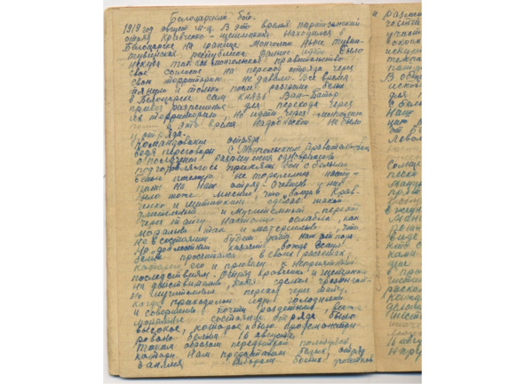 Рукописное описание Белоцарского боя, автор – мой дед С. А. Зайцев, карандашная рукопись деда обведена рукой моей бабушки Е. Т. Полещук, Омск, 1938 г.