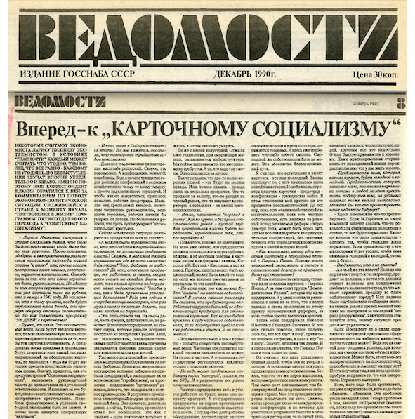 Материал опубликован в газете «Ведомости Госснаба», декабрь 1990 г. (в заголовке случилась ошибка – вместо «капитализм» напечатано «социализм»)