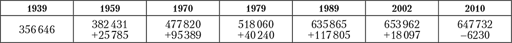 Таблица 1. Численность казахов в РСФСР и Российской Федерации по переписям 1939–2010 гг.