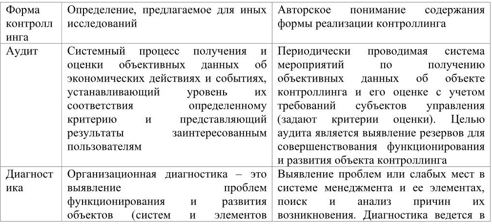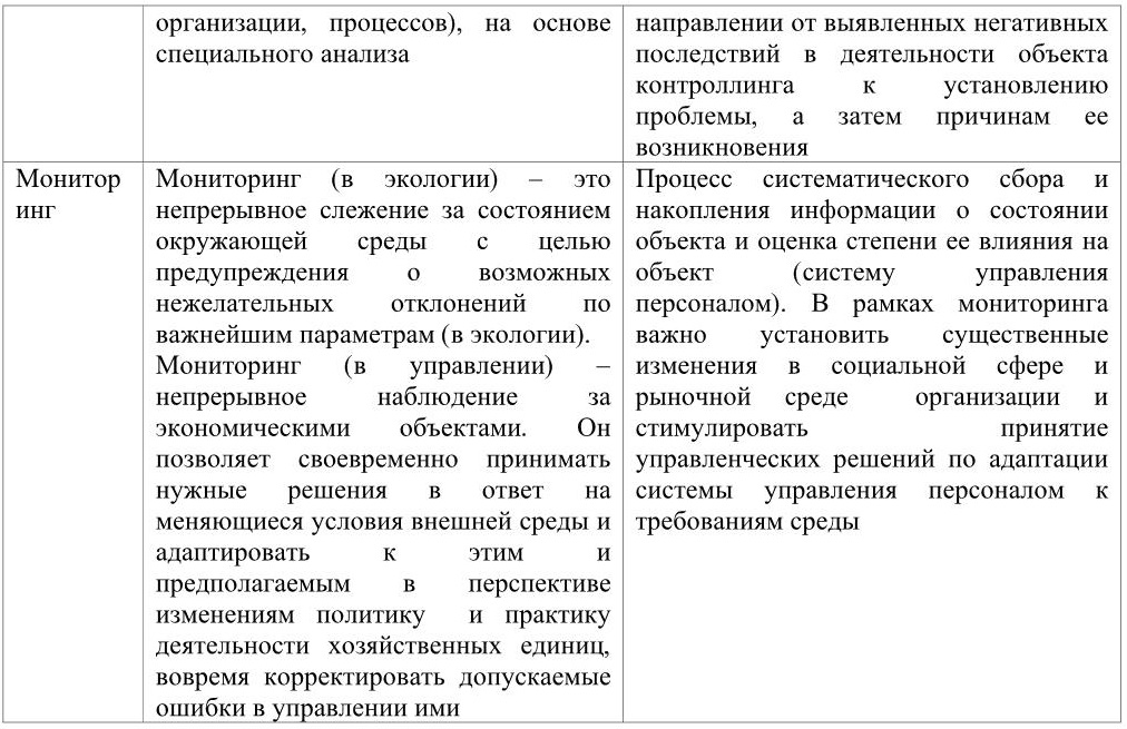Таблица 1. Формы контроллинга системы управления персоналом