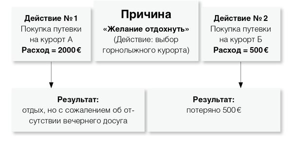 Если бы вы отправились в тур А, то оказались бы в худшем месте, так как на этом курорте в отличие от курорта Б отсутствует вечерний досуг. Но остаться без этих 2 тыс. евро тоже не хочется. И вы едете по путевке А, несмотря на потерянные деньги. Вы сделали выбор в пользу путевки А, думая о безвозвратной потере размером 2 тыс. евро.