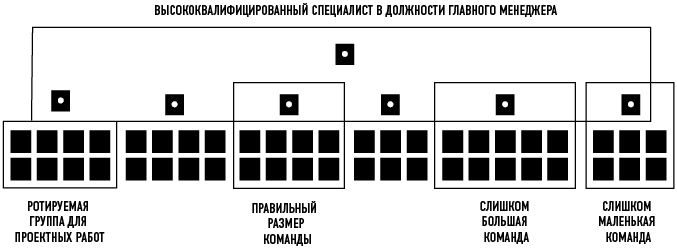 Мне часто доводилось администрировать группы из одного или двух сотрудников, но каждый раз я жалел об этом. Подчеркиваю: каждый раз. Важная составляющая командной работы – возможность смягчать проблемные зоны ее отдельных участников. Коллектив менее чем из четырех человек представляет собой достаточно непрочную систему и функционирует так, будто каждый из них работает по отдельности. Руководя небольшим количеством людей, вы вынуждены подстраивать работу под график дежурных смен, перерывы и отпуска ее участников.