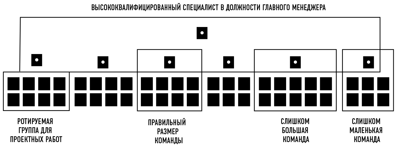 Под управлением одного менеджера должно быть от шести до восьми инженеров.