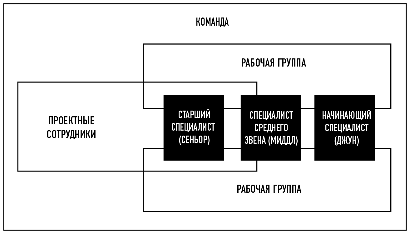 Рисунок 2.1. Определение размеров команд и групп команд с использованием правил оптимальных размеров.