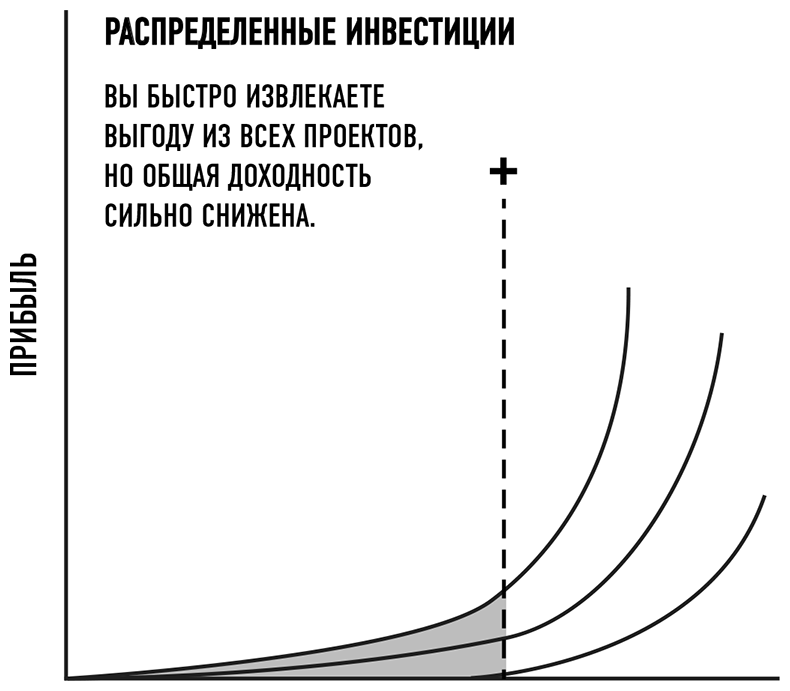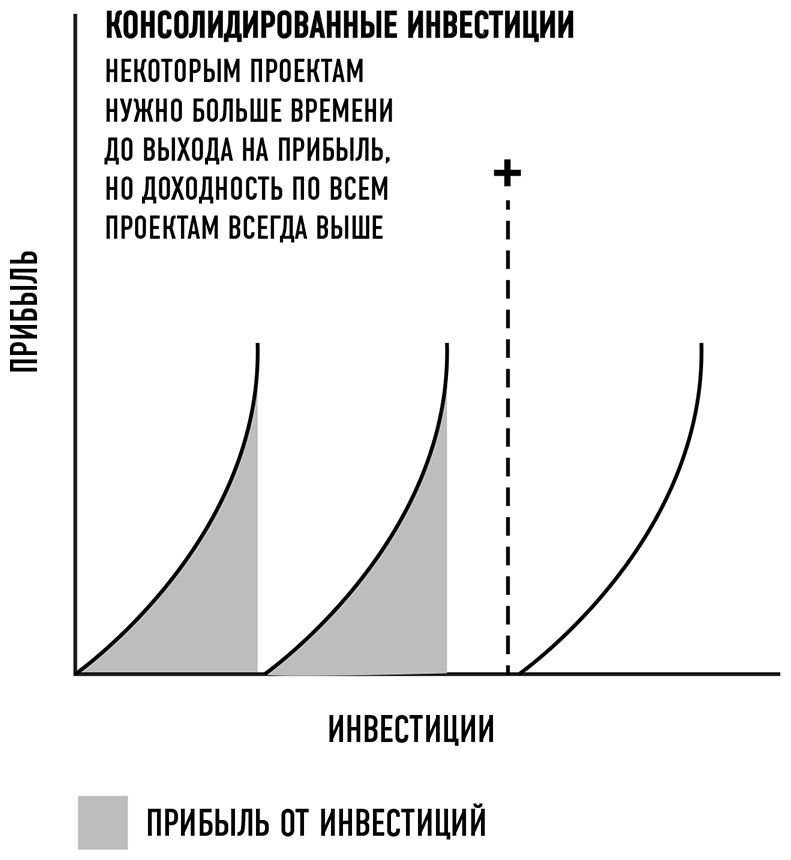 Рисунок 2.5. Прибыль при консолидации инвестиций по сравнению с распределением инвестиций.
