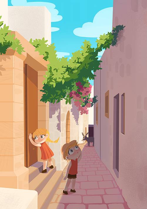 Дети вышли из ворот на маленькую улочку перед домом. Широко цветущая бугенвиллея роняла тень на бусчатую мостовую, скрывая полуденную жару.