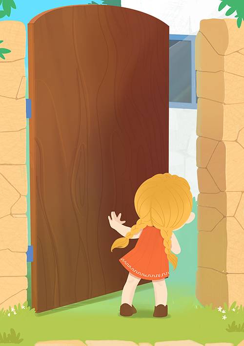 Сначала стук затих, а потом дети услышали тяжелые шаги, приближающиеся к воротам. В мгновение ока ребя-та скрылись в своем дворе. Они услышали, как скрипя открылась соседская дверь, а через секунду опять закрылась.